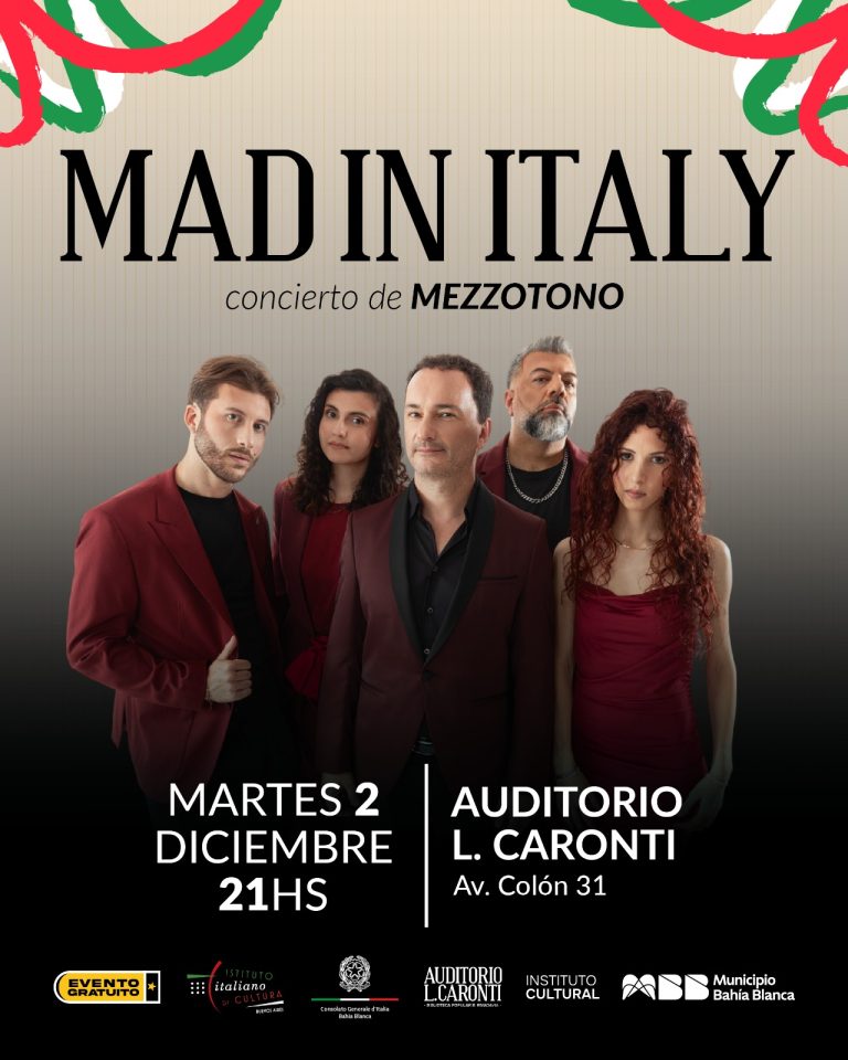 - Sapori d’Italia: Espectáculo Multi-Evento en el Centro de la Ciudad – 23/11 – desde las 18.30hs – Plaza Rivadavia, Bahia Blanca – Acceso libre y gratuito.